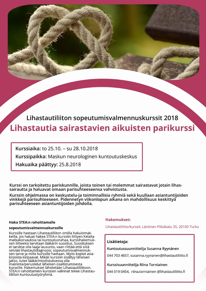 Tai onko kenties puolisollasi, vanhemmallasi, tai sisaruksellasi lihassairaus ja koet että oma tarinasi läheisen roolissa koskettaisi muita?