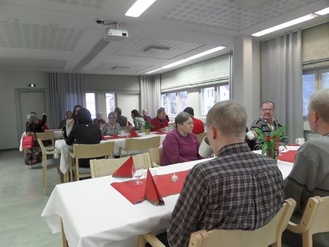 Tässä pieniä tunnelmapaloja kuvien kera pikkujoulusta. Nautimme hyvästä ruuasta ja yhdessäolosta. Kiitos Vertille ja Unnalle soittotuokiosta. Niin kuin ennenkin pikkujoulussa, joulupukki vieraili ja toi pienet paketit. Yhdessä lauletut joululaulut saateli meidät jouluntunnelmaan.