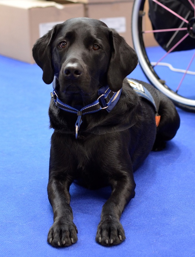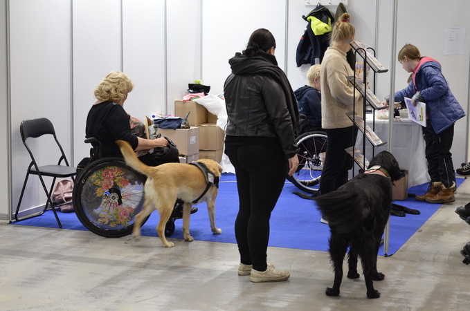 Eri yhdistyksien kojuilla oli mahdollisuus tutustua erilaiseen toimintaan, ja tehdä tuttavuutta avustuskoirien kanssa. Kuvassa omistajan luvalla Usko-Aputassu.