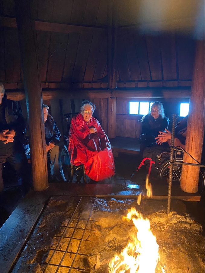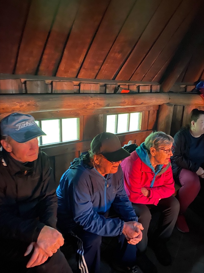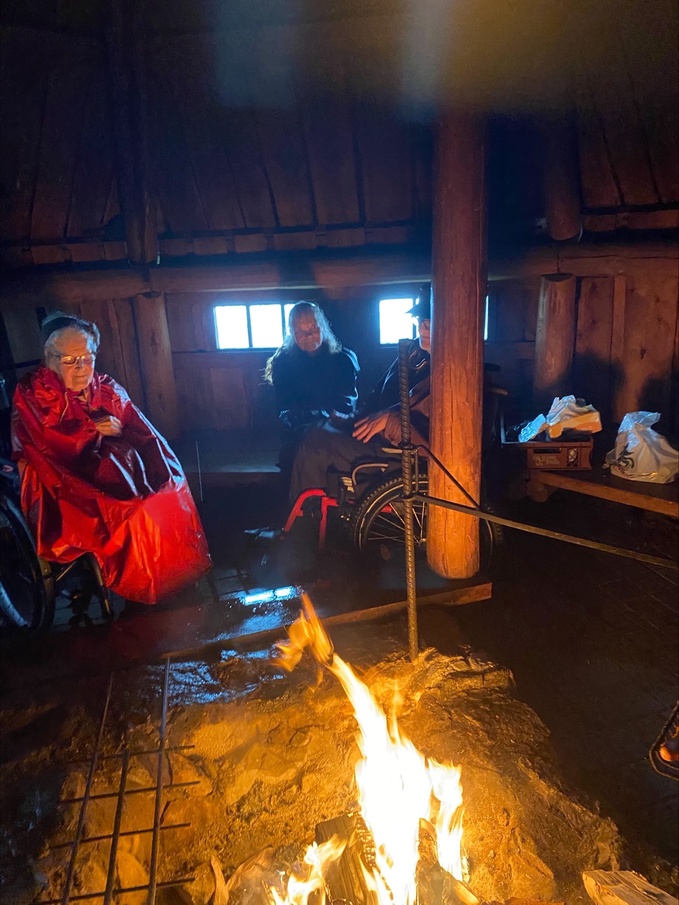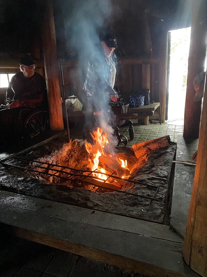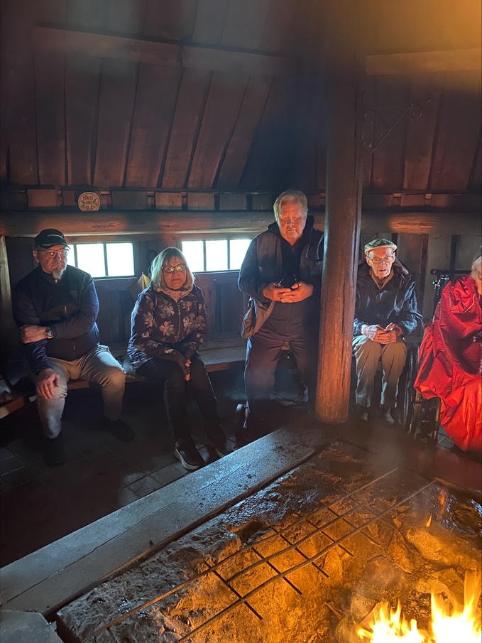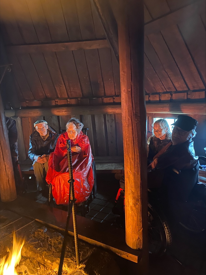 Matka sujui mukavasti keskenään rupatellen, ja kuljettajan armeijatarinoita kuunnellen. Laavulle saavuttuamme aurinko pilkisteli pilvien lomasta, vaikka tuuli olikin navakka. Kodan suojissa oli kuitenkin hyvä sytytellä nuotio ja laittaa makkarat paistumaan. Juttua riitti ja makkarat maistuivat ja niitä oli juuri sopiva määrä, kaikki meni!