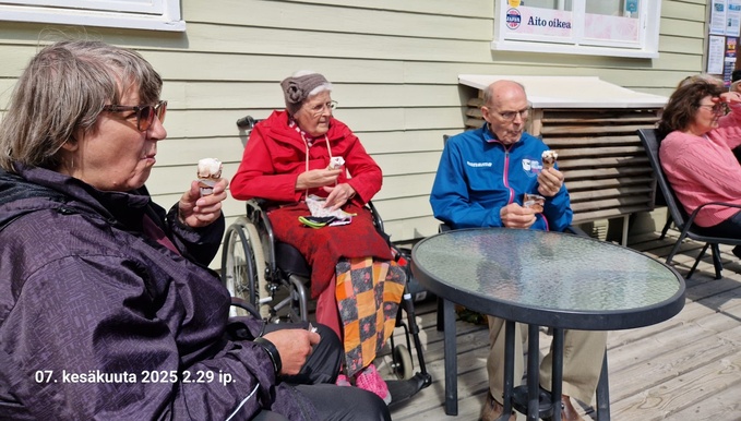 Kahvilassa pullat olivat vielä uunissa, joten laitoimme pöydät ja penkit paikoilleen, haimme jäätelöt ja nautimme olostamme.