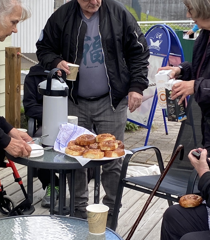 Juuri sopivasti jäätelön syönnin jälkeen pullat olivat paistuneet ja ihana tuoksu levisi ympäriinsä, kun ne tarjoiltiin meille kahvin kera.